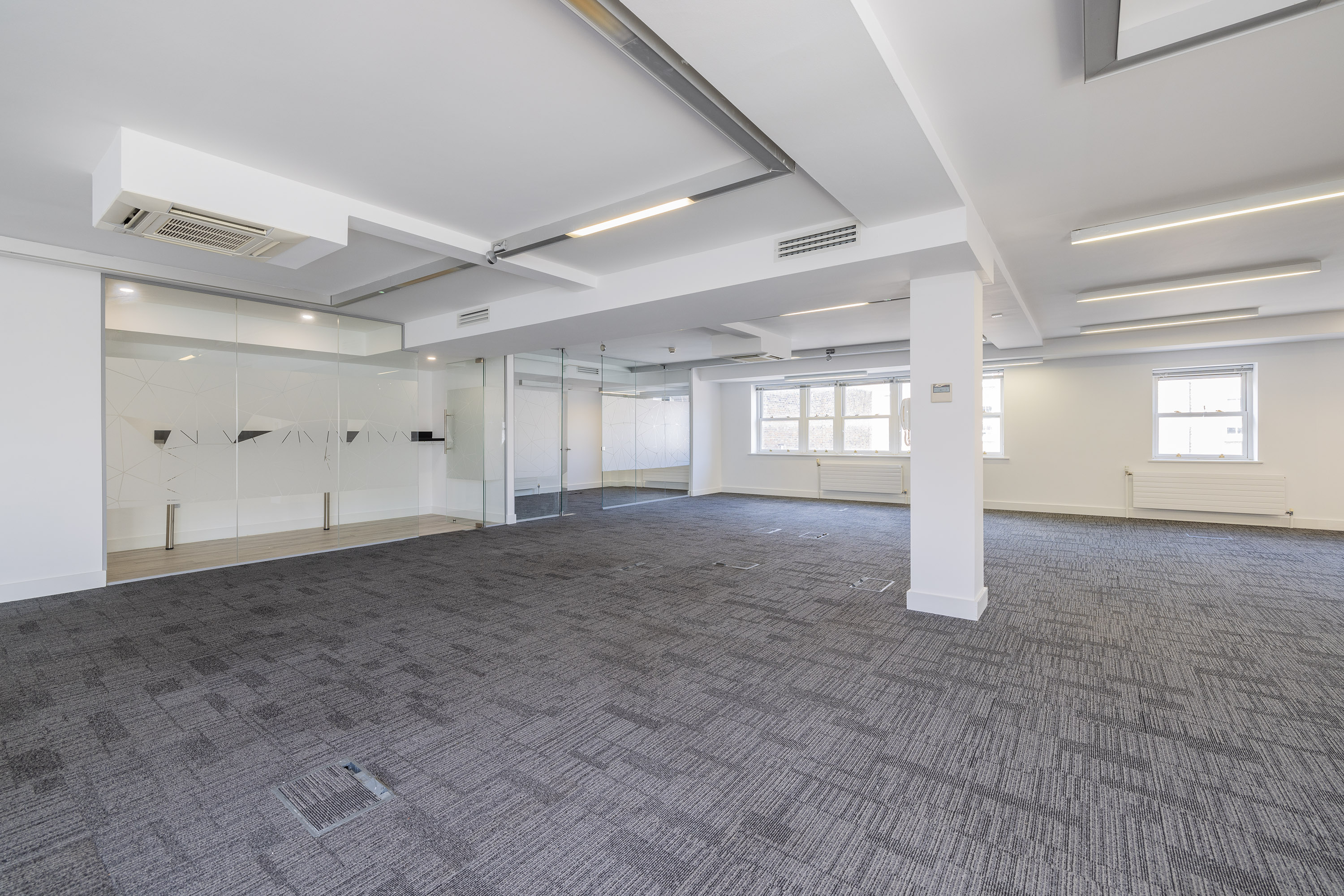 The first and third floors, which are available for lease, come fitted and feature a mix of open-plan and private office spaces, with kitchen facilities on each floor. The specifications include fluorescent lighting, plaster and painted ceiling, raised access floors, carpeted flooring, air conditioning and PVC windows.
