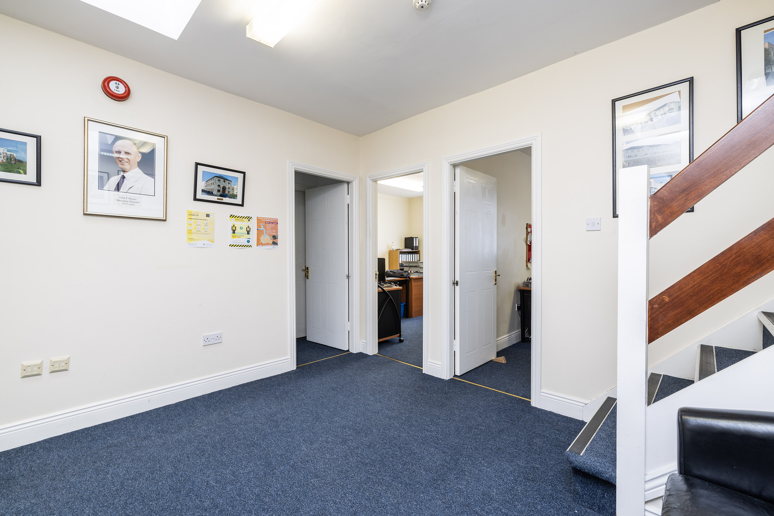 The office suites are also finished to a high standard, offering a combination of open-plan and private spaces. Features include plastered and painted walls and ceilings, fluorescent strip lighting, air conditioning units, perimeter trunking, a communications room, a tea station, and WC facilities.